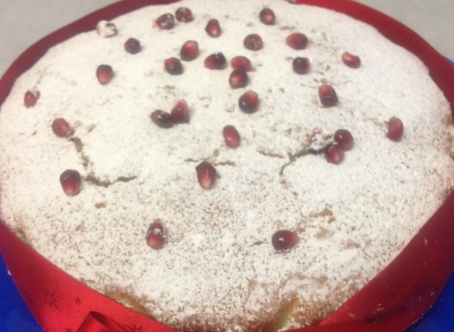 Βγάζουμε από τον φούρνο, αφήνουμε να κρυώσει ελαφρώς και πασπαλίζουμε με ζάχαρη άχνη.